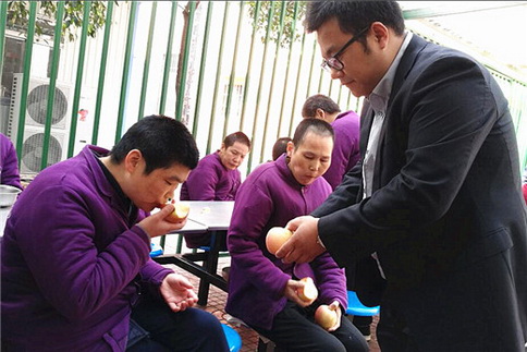 11月10日上午,临沂市生命关怀协会(筹)携手鲁商置业临沂区域公司为临沂市社会福利院捐赠爱心苹果5000斤,福利院的每位收留者吃上了鲁商置业捐送的爱心苹果,心里感觉甜滋滋的。