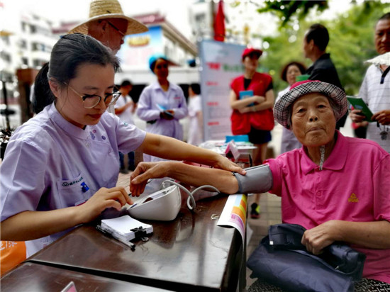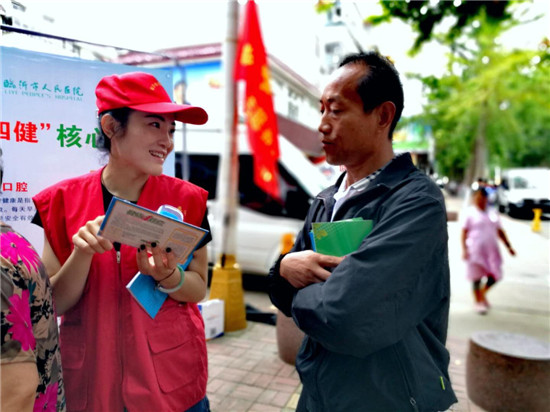 临沂市人民医院派出了内科、外科、中医科、营养科等13名专家医疗队,为社区居民免费测血压、查血糖,并就减盐、减油、减糖及健康口腔、健康体重、健康骨骼、健康心理知识的“三减四健”健康知识进行了宣讲,对社区居民关心的有关健康问题进行解答。