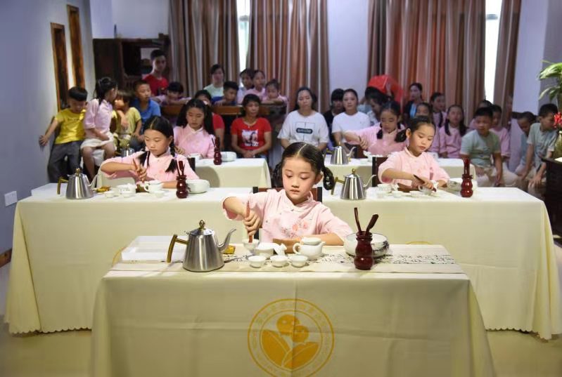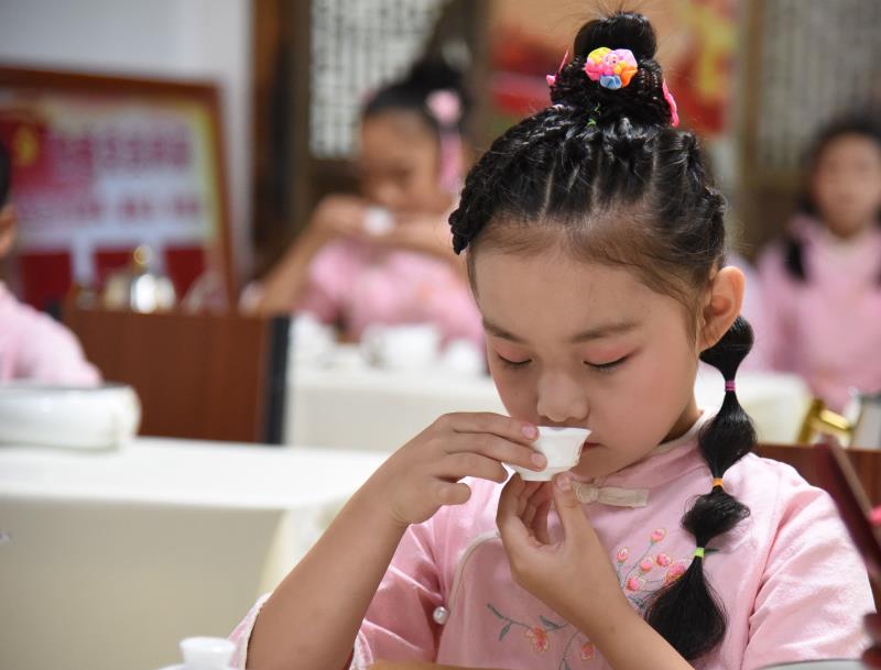 在悠扬的音乐下,在一杯感恩的茶中,首届感德"小小茶艺师,小小评茶员"培训活动圆满落幕了。