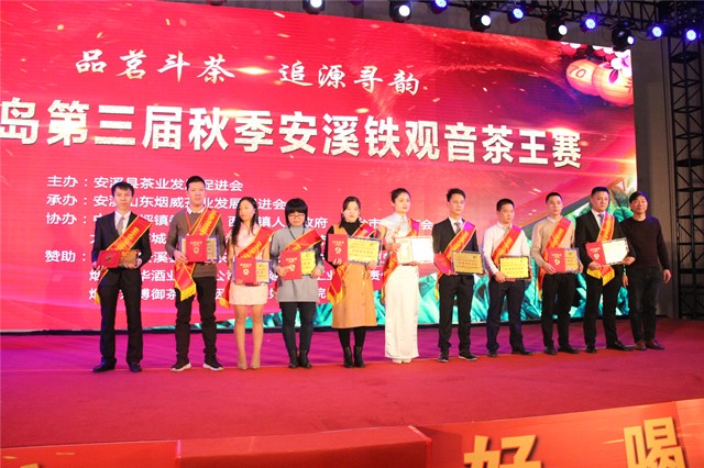 12月26日晚,在烟台大成门酒店举行了茶王赛颁奖典礼暨茶王品鉴会,大家在领略到品质上乘的安溪铁观音的同时,还欣赏到了茶歌茶舞等传统茶文化节目。(赢长)