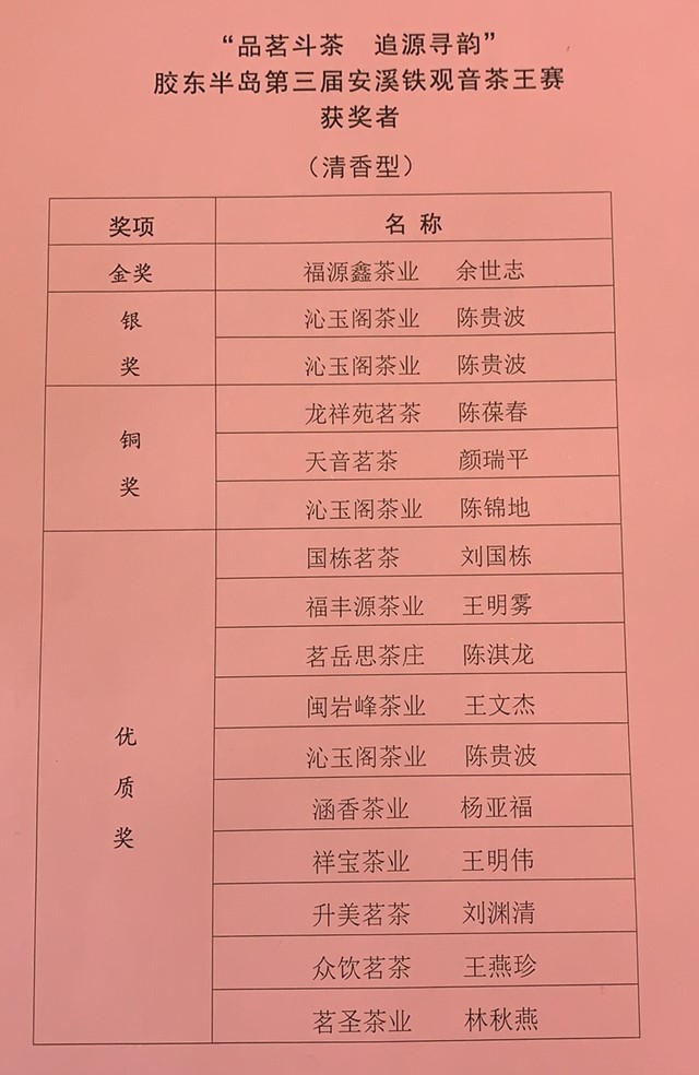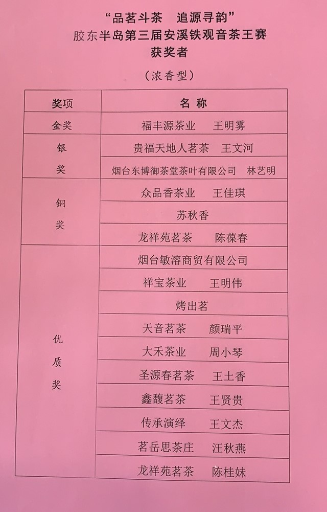 热烈祝贺胶东半岛第三届安溪铁观音茶王赛