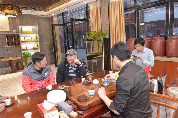 5月6日下午拍摄收工后,应赞助方古凤茶庄总经理胡伟和益特庄园总经理任恩俊盛情邀请,参与《菲菲礼品店》电视剧拍摄的知名演员陈铮、盛石头,总导演赵建波等嘉宾来到位于临沂茶博城内的古凤茶庄品茗茶,谈茶道,借机放松一下心情和一天工作的劳累。