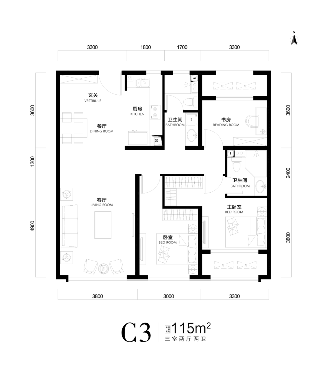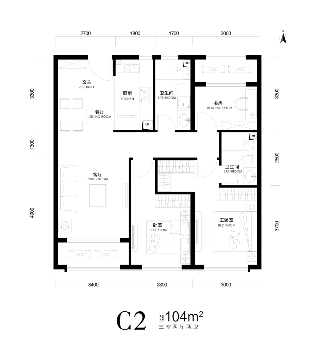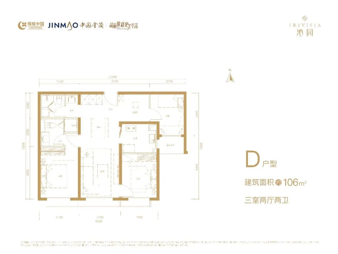 户 型:104㎡/115㎡/125㎡三居、158㎡四居