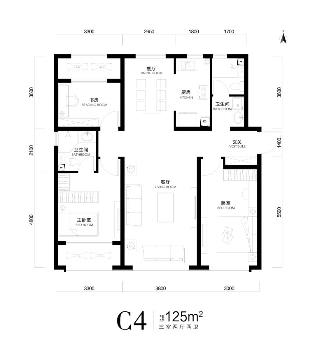 户 型:55㎡一居,78㎡两居,95/105/120㎡三居,145㎡四居