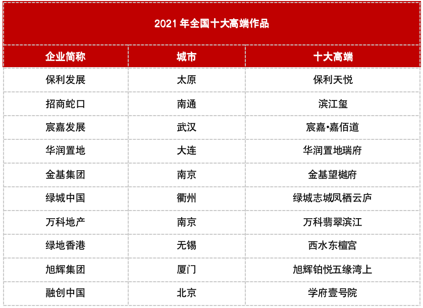 在今年克而瑞发布的《中国房地产企业产品力白皮书》中,对《中国房地产企业产品力百强》、《全国十大产品系》(含豪宅、轻奢精品和品质美宅)以及《全国十大作品》(含高端作品、轻奢作品和品质作品)三大榜单进行了测评。