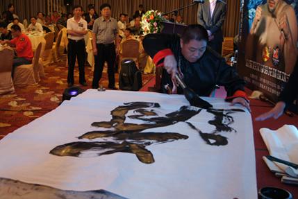 知名书法家亲临现场挥毫泼墨,现场拍卖大师墨宝,中正茶叶市场将所拍卖款项全部捐赠给贫困学生。