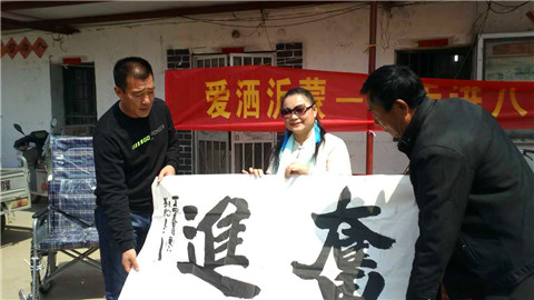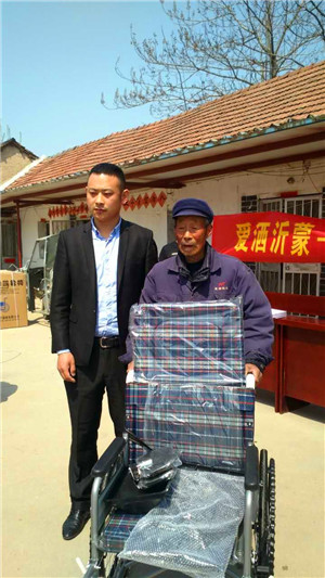 当天上午,临沂市社会爱心联合会组织爱心单位和爱心人士来到临沂市河东区八湖镇坊上村,在该会会长李波的带动下,为该村的10户困难家庭捐款五千元,8户残疾贫困家庭分别捐赠轮椅8辆,为该村的坊上小学捐赠字画三幅。