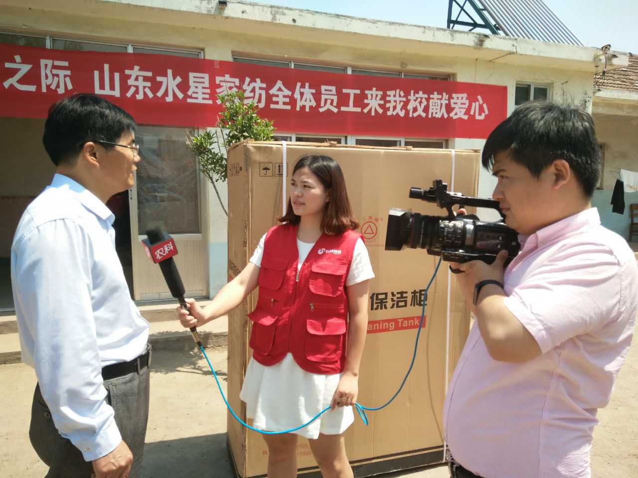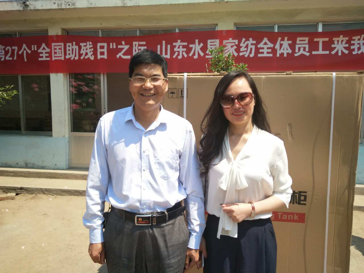 孔杨女 山东水星家纺公司总经理非常感恩你们对这些孩子的付出,这是我们全体员工的捐款,给孩子们改善一下生活。还有我们带来了被子,消毒柜等,如果以后有什么需要我们一定来帮助这里的孩子,一起帮他们生活的更好。