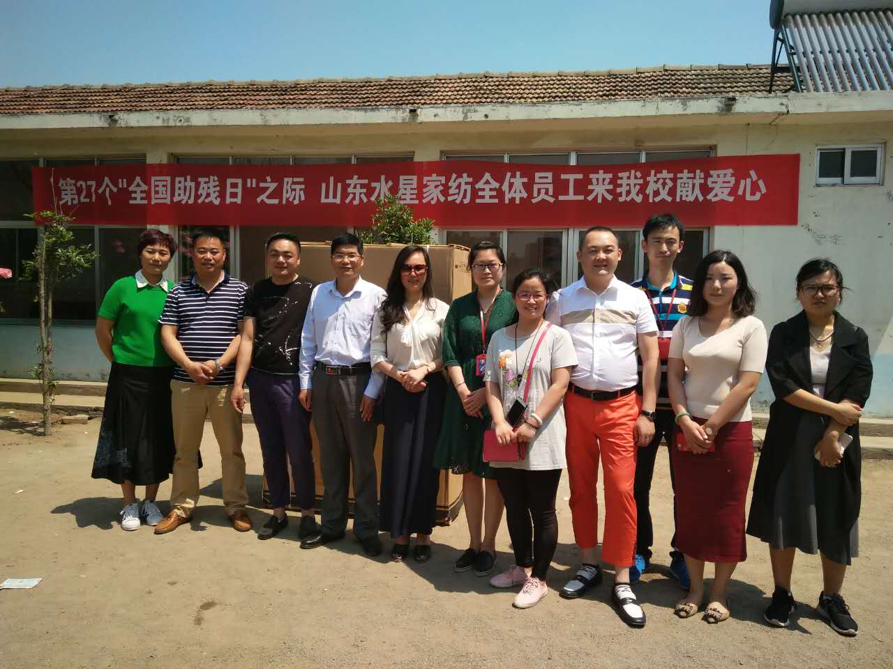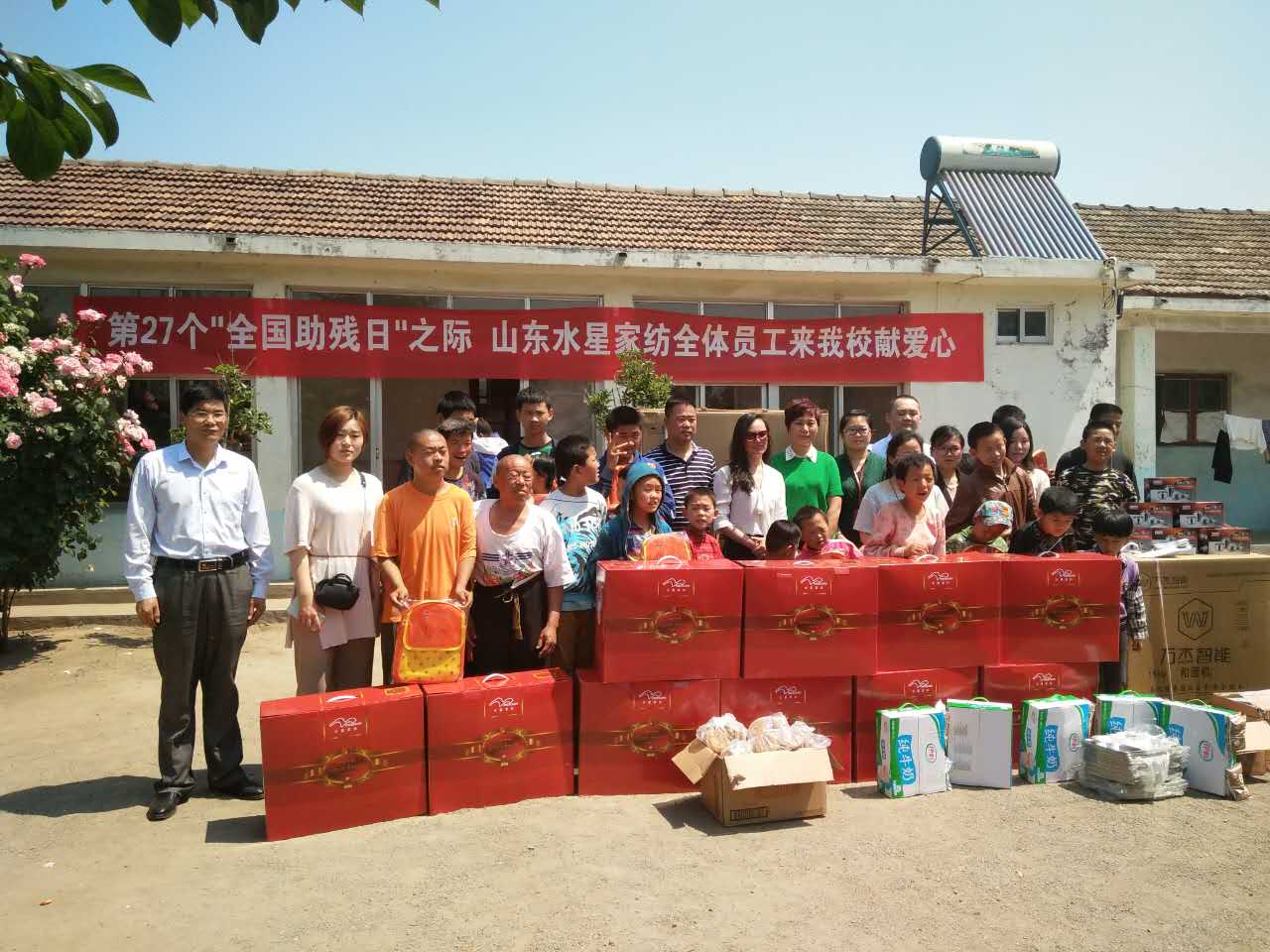 在这助残日到来之际,山东水星家纺全体员工,一共给孩子们送来五千块钱的慰问金,七千多元的生活用品,还给孩子们发牛奶,发书包,对孩子的关心无微不至。