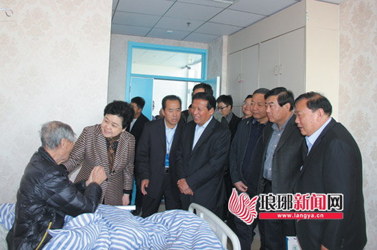 论坛期间,中国老年医学学会范利会长(左一)同临沂市人大常委会原党组副书记、副主任、市慈善总会会长徐福田等领导看望入住凯旋养护院的老人并与其进行了亲切交流