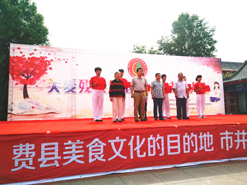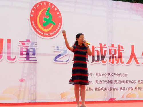 临沂民生网5月18日讯:费县文化艺术促进会在费县红云小镇举行了“关爱残疾儿童·艺术成就人生”助残活动。费县特校、费县红云小镇、费县书画艺术学校予以协办,费县工商联、费县残联、费县教育局给予了大力支持。有二十余家企业和个人在物资和经济给予大力支持!自去年费县文化艺术产业促进会成立以来,在费县工商联、费县残疾人联合会、费县特殊教育学校、费县书画艺术学校及社会各界爱心单位、爱心人士的支持帮助下,会同费县特校经过一年的努力,已有23名残疾儿童在潘正荣、李成法、孙德成三位乐于奉献、艺术造诣较高的老师手把手精心栽培下,技能都有了很大进步,在演出台北侧,我们看到的就是这些师生的作品和才艺展示。