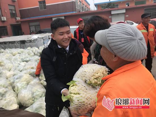 琅琊新闻网12月21日讯 (记者 胡雪莹) 21日清晨,临沂市气象台发布大雾黄色预警,前往临沂市沂水县三十里堡社区拉菜的车队却丝毫没有耽误,11辆蔬菜配送车早晨7点30分按时出发。因为路面被大雾笼罩,3个小时后车队终于到达目的地。当天下午,1万斤爱心菜花被赠送至临沂市东城环卫有限责任公司,爱心菜被全部分发给“城市的美容师。”