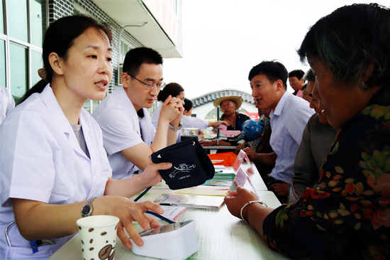 本次活动由临沂市人民医院派出心内科、骨科、麻醉科临床医生骨干以及护理专家组成义诊团队,在板泉镇医院和社区医生的配合下,通过给群众检查身体、询问病史、了解病情、答疑解惑、发放宣传资料等方式,为广大群众提供临床诊断和健康知识指导。