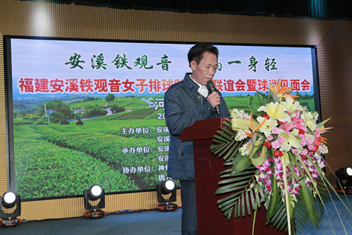据了解安溪县高度重视茶产业发展,为了推动安溪铁观音的二次腾飞,今年来,在福建省体育局的关心和支持下,安溪县委县政府和福建女子排球队深度合作,福建女子排球队冠名福建安溪铁观音女排,两者强强联手,相益得彰,实现了合作共赢。安溪县文体新局副局长“章宝芳”女士,从全国第一茶与世界冠军的牵手、健康与健康的跨界融合、品牌形象的整合提升等方面介绍福建女排冠名安溪铁观音的情况:安溪铁观音和福建女排都是有影响的福建品牌名片,有着丰富的文化内涵和精神特质,深受国人关注和赞赏。安溪铁观音与福建女排正是凭借爱拼敢赢、千揉百焙、自强不息的精神,塑造出健康向上的品牌形象。通过此次冠名,将整合优势,进一步提升各自品牌形象。