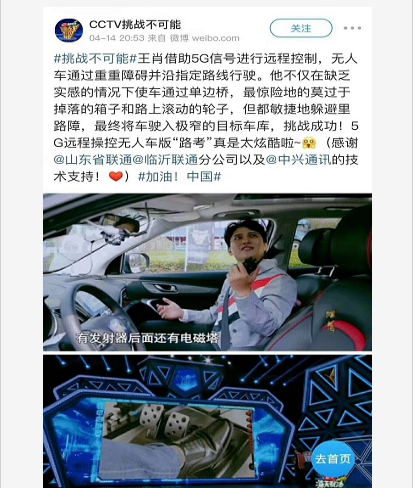 央视《挑战不可能》:3公里外无人驾驶 检验联通5G真正实力