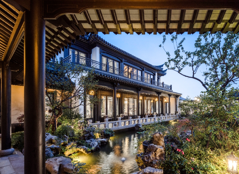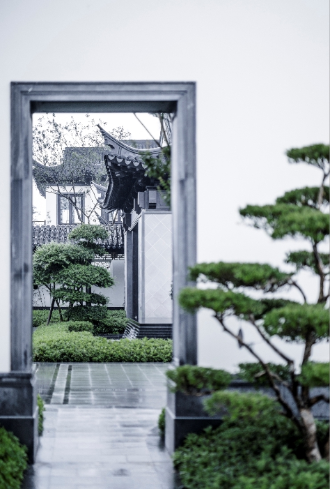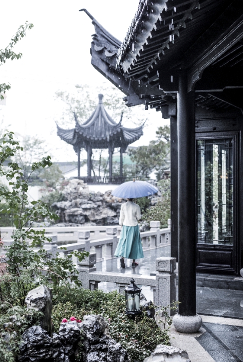 真是好一处江南园林,堆山理水,水石相映。疲惫的内心突然翻起了涟漪,繁忙的工作早已抛到脑后,这样亭台石桥、花街铺地、月洞花窗,不正是内心向往的那一片净土吗?以“瘦、漏、透、皱”为美的太湖奇石,从原产地运来叠立庭中,一汪碧水倒映着飞檐门廊,借景、点景、引景、藏景处处可见,空间的进退、院落的出入,层次分明,有灵且美。