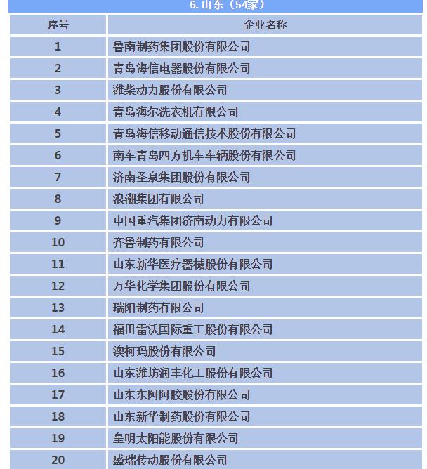 据了解,山东省共有54家企业上榜,前20强名单如下图。