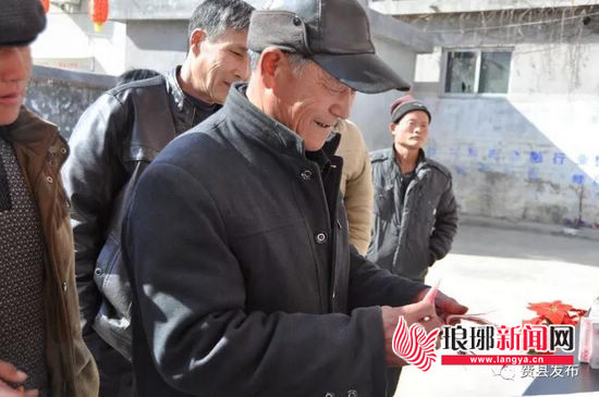 2月12日上午,冬日里的临沂费县万良庄天寒地冻,却抵挡不了父老乡亲参加股份经济合作社分红的热情。62岁的村民曹广聚从合作社理事长的手里接过分到的四百元钱,高兴的合不拢嘴。