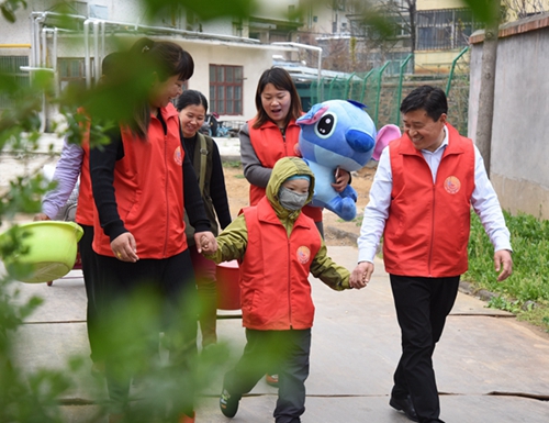 2017年4月6日,白血病男孩朱立帅康复出院,志愿者为白血病男孩朱立帅穿上特制的马甲,圆了孩子当志愿者的梦想。