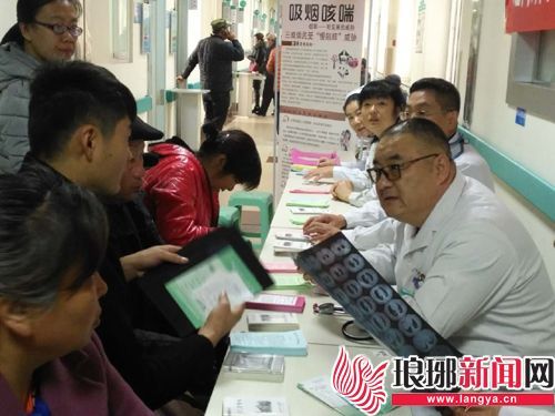 本次义诊由临沂市人民医院呼吸内科二病区主任、山东省医学会呼吸病学会常务委员、临沂市医学会呼吸病学分会主任委员许新毅带领多名呼吸内科主治医师坐诊,为前来就诊的市民进行免费义诊和肺功能检查,并提供专家健康咨询、指导患者做家庭康复治疗等多项服务。前来咨询、参与义诊的患者络绎不绝,现场呼吸内科医护人员对他们提出的问题进行了耐心细致的讲解,并对他们的健康管理进行了指导,病人满意而归,活动收到预期效果。