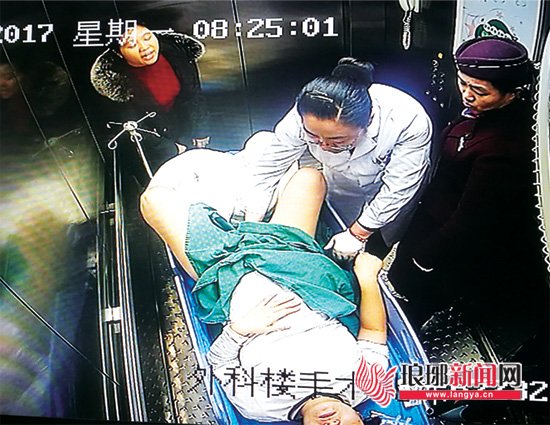 25日早晨7点40分左右,在临沂市兰山区沂州路与银雀山路交会处北侧路西人行道上,一怀孕女子突然跪倒在地上。临沂市人民医院产二科护士侯丽萍正好经过,她赶紧转身上前询问。