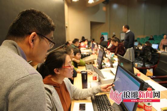 山东省临沂市人民医院学术报告厅已经被临时改成了单病种管理推进工作组工作室,各个科室工作人员围着电脑上的品类和数据小声又仔细地研究讨论着,记者目测,现场共有近30台电脑,每台电脑上都围着2—3个人,大家都在进行严肃的讨论。