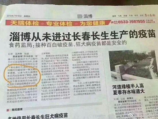 在疫苗事发后,淄博等地的部门,纷纷表态本地没有进问题疫苗。比如《鲁中晨报》就报道说,《淄博从未进过长生生物出产的疫苗》,但很快就被家长的疫苗本打脸。事后证明,淄博打的正是问题疫苗。