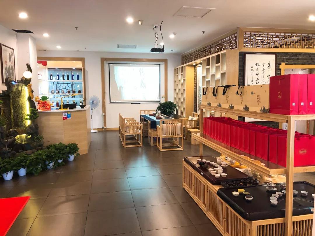 这家传成形象店面积240平方,原木色的橡木家具,宽敞的格局设置,明亮的空间设计,新中式的风格消除了客户的陌生感,拉近了客户的距离,让整个茶空间清静更亲近。