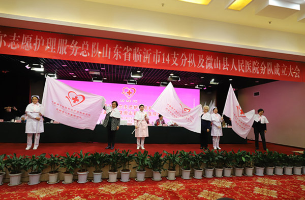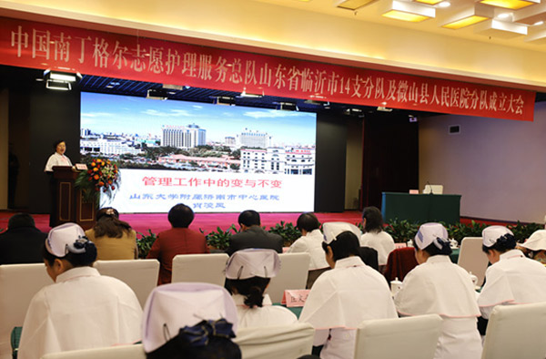 市总工会刘淑秀主席在现场讲话中传达了市委书记王玉君对市南丁格尔志愿服务队做好护理志愿服务工作的批示精神,强调要发挥队伍作用,广泛开展符合群众需要的护理服务活动,助力全市精神文明建设和经济社会发展。刘淑秀对新团队的成立表示热烈祝贺,表示此次14支分队的成立再次壮大了我市南丁格尔护理志愿服务队伍力量,同时也对志愿者提出了明确要求。一是要充分认识开展护理志愿服务的重要性和必要性;二是要积极开展主题鲜明、专业优质的护理志愿服务;三是要打造具有沂蒙特色的护理志愿服务品牌。