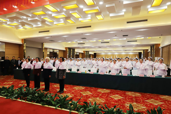 大会在庄严的国歌声中拉开序幕。孙文婷副会长宣读《国际红十字运动“七项基本原则”》后,市人民医院王凤玲副院长致欢迎辞,她首先对14支护理志愿队伍的加入表示热烈欢迎和期待,并对下一步全市护理志愿服务工作的发展给出具体建议。