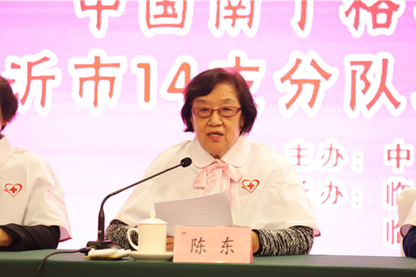 陈东副理事长发表讲话并作先进事迹报告。陈东在讲话中对志愿者队伍提出了更高要求和希望,她希望志愿者们要继续传承和弘扬红十字会的精神,继承和发扬南丁格尔奖获得者们爱岗敬业、恪尽职守、无私奉献的优秀品质,为南丁格尔志愿护理服务总队及临沂分队的护理志愿服务活动再创佳绩,为健康中国贡献自己的力量。陈东在事迹报告中分享了她从事护理工作四十三年来的所感、所悟,表达了她对护理工作的无限热爱,她坚守岗位、抗击非典等经历让与会者潸然泪下,震撼心灵,获得现场阵阵掌声。