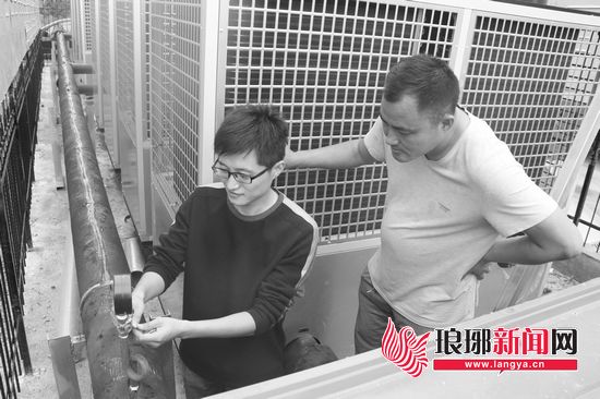 “这个空气源热泵采暖即俗称的‘空气能’,相对于燃煤或燃气采暖方式是零排放,供暖效果稳定可靠,是目前市场上最为成熟的一种高能效比的清洁能源供暖方式。”负责建设东蒙小区空气源热泵的山东德润热力有限公司项目经理杨志涛说。