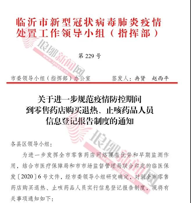 临沂市委新冠肺炎疫情处置工作领导小组(指挥部)办公室,连下两道指令!全系全市市民、药店!一起来看!
