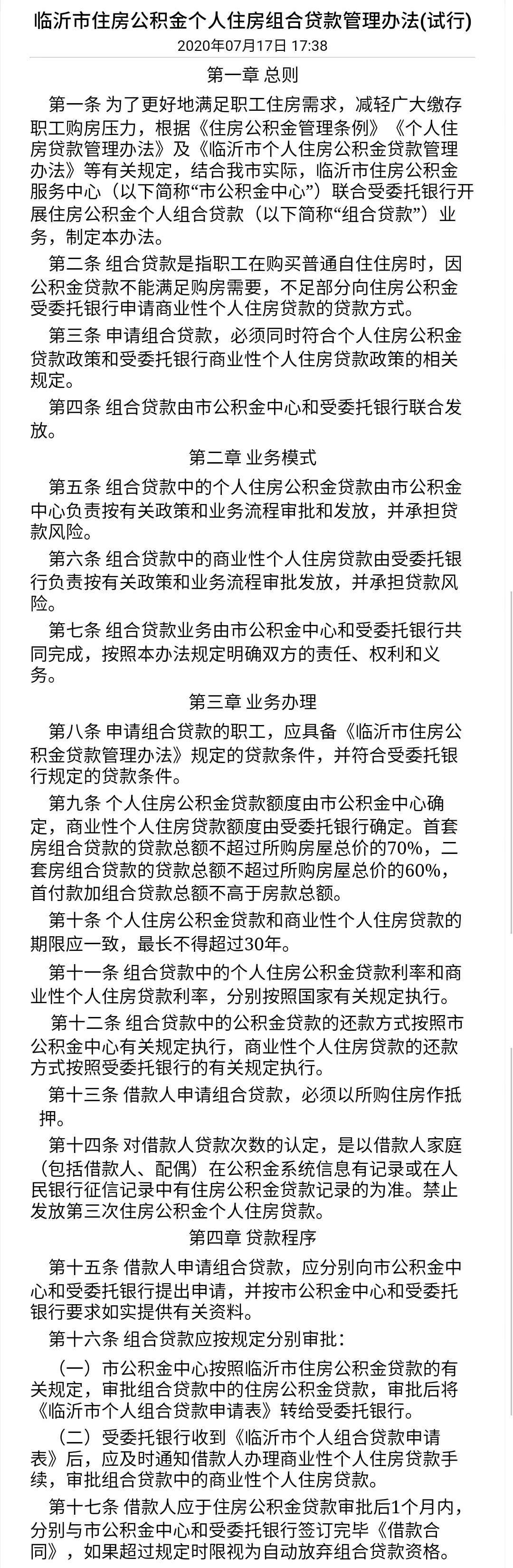 日前,临沂市住房公积金服务中心出台《临沂市住房公积金个人住房组合贷款管理办法(试行)》,联合受委托银行开展住房公积金个人组合贷款(下称“组合贷款”)业务,助力广大中低收入家庭实现“住有所居”“住有宜居”。