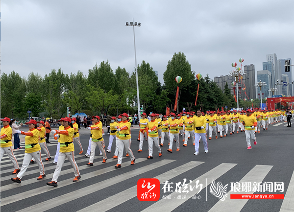 4月24日上午,临沂市第十一届全民健身运动会开幕式暨第五届“房源杯”万人健步行活动在北城新区北京路五洲湖广场举行,身穿五颜六色队服、神采飞扬的万人健步队伍成为城市里一道最美的风景线。