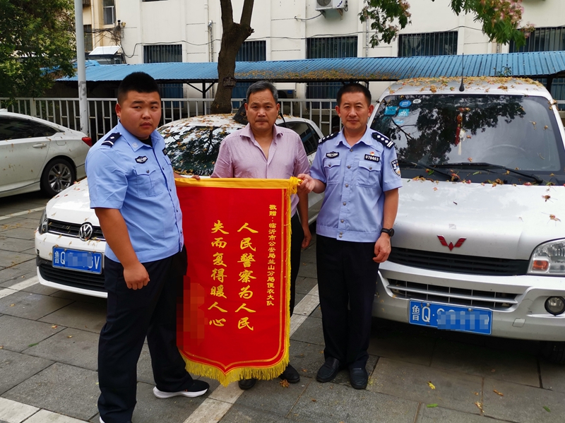 面包车主给民警送上锦旗表谢意