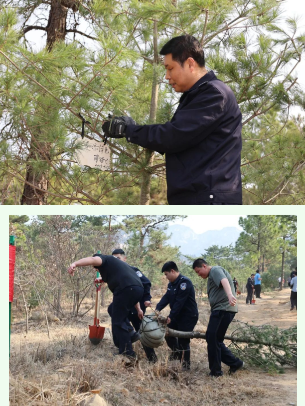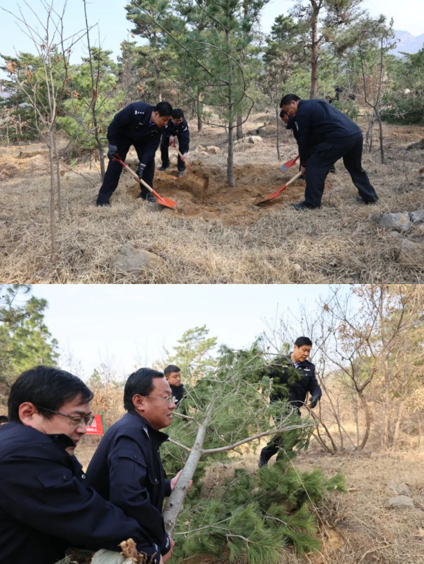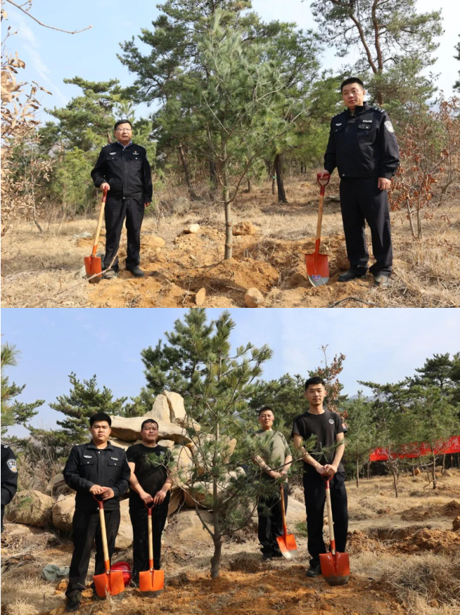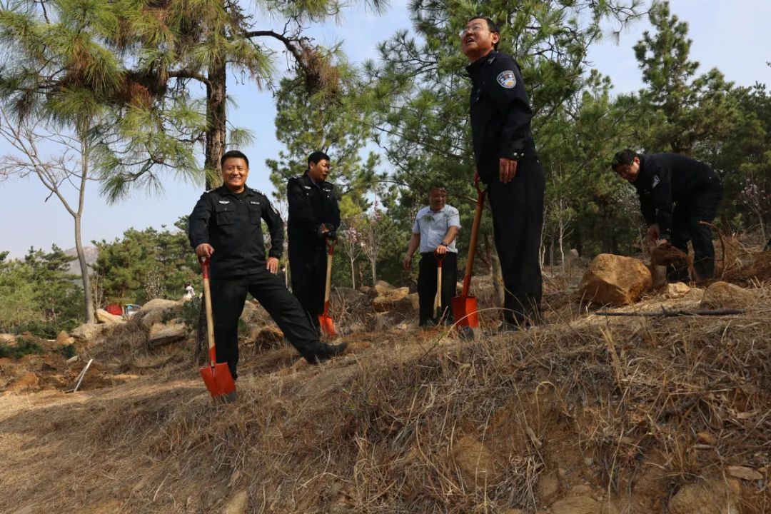 春风拂面,春意盎然。“警”色怡人,再添新绿。3月11日上午,在植树节来临之际,蒙山分局党委联合沂蒙山旅游发展有限公司党支部开展“同植东山苍翠,共享绿水青山”植树党建共建志愿活动。分局党委书记、局长曹晓飞,指挥中心、政工监督室、法制大队主要负责同志及各单位民辅警共计40余人参加。
