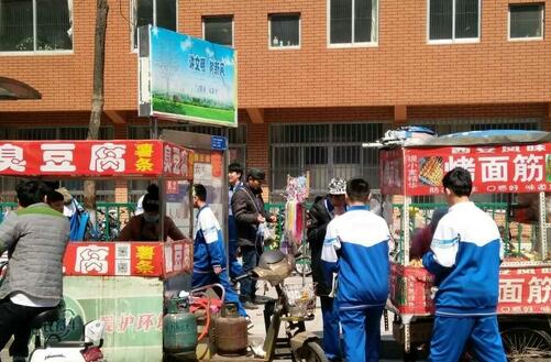 现场直击:学校门口商贩多 三轮车上挂气罐