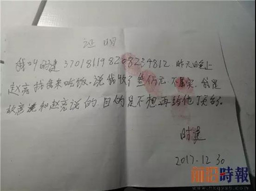 1月18号下午时健去卫计局当面推翻了这个假视频,承认赵亮威胁他录的,赵亮不让他走,时健当时害怕想早点回去才这么说的。时健从卫计局问完材料回去一个多小时,接着赵亮就知道啦。找七八个人就去找时健报复,后来时健老婆害怕只好打了110那些人才走了。