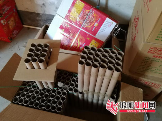 根据群众举报线索,临沂市安监局联合临沭县安监、公安部门组成“打非”小组,执法人员缜密部署,重点布控,逐户摸排。在位于临沭县临沭街道兴隆商场以西兴隆街一民宅内,小组发现一处非法加工销售烟花爆竹窝点,现场查获非法烟花爆竹产品1477箱,其中鞭炮47箱、礼炮640箱、礼花226箱、摔炮24箱、组合烟花半成品540箱,另有大量裸露引线、包装胶带、纸箱等物品