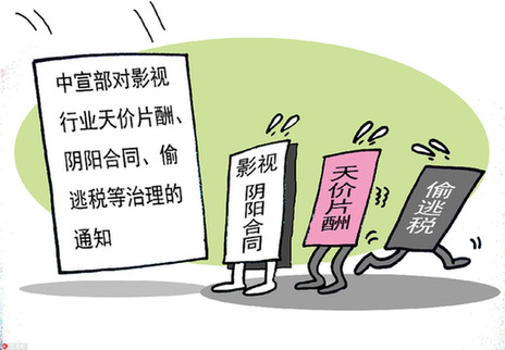 日前,中央宣传部、文化和旅游部、国家税务总局、国家广播电视总局、国家电影局等联合印发《通知》,要求加强对影视行业天价片酬、“阴阳合同”、偷逃税等问题的治理,控制不合理片酬,推进依法纳税,促进影视业健康发展。