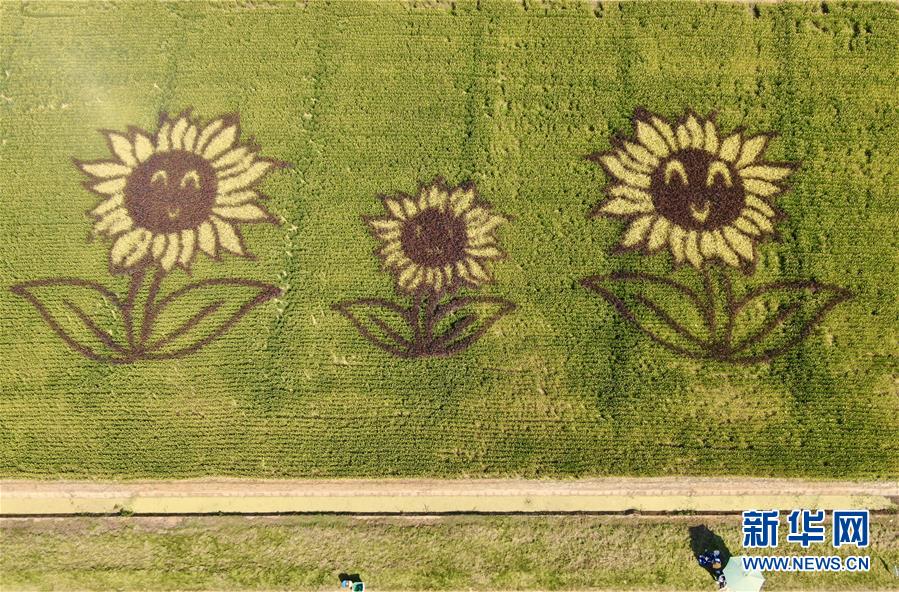 10月3日,在南京六合区钱仓村的葵花园,葵花“笑脸”迎接游客到来。 新华社发(秦淮 摄)