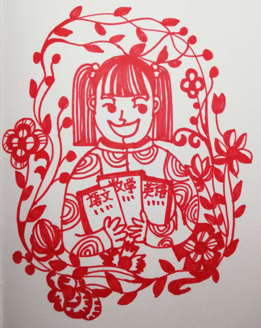 一张红纸、一把剪刀,临沂北园路涑河小学教师疫情期间发放学生2020年春季教材教辅的形象被剪纸记录下来。