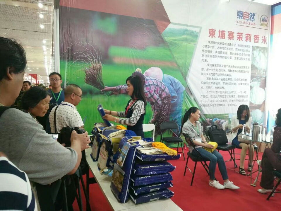在展位上,展商将香米煮成糯香的米饭,吸引了众多的观众们前往品尝。据柬埔寨加华综合企业集团驻华首席代表艾玛女士介绍,“柬自然”茉莉香米平均颗粒长度7.2mm以上,一年一收, 由美丽的湄公河流域河水孕育成长,香米外表细长且白洁晶莹,散发出特殊香味,烹饪后口感细腻,浓香醇厚,因其煮熟后会散发出淡淡的香气获此美名。真正的柬埔寨茉莉香米,是遵循的自然生长出来的,是有信仰、有敬畏的一种产品。自然散播,不催熟,只用农家肥,人工收割,避免机械二次污染,让稻谷顺应天性孕育成长。
