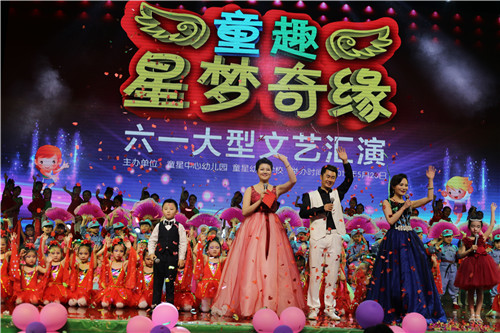 在童星中心园组织的“童趣·星梦奇缘 ”六一汇演中,童星中心园、幼师学校师生和家长的30余个文艺节目,以仙气飘然的舞美,华彩炫目的表演,亮丽精美的服装,明丽可爱的妆容……为观众带来了一场视觉盛宴。来自童星实验小学、草帽姐的双胞胎儿女龙凤传奇李乐乐、李烁烁带来的歌曲助演,也赢得了掌声雷动和好评。由山东温和酒业及临沂国旅、临沂联通赞助的家长抽奖环节,更是掀起了现场的一个个欢乐的高潮。