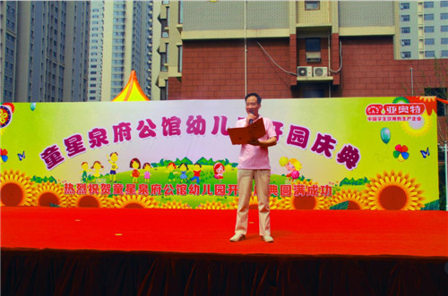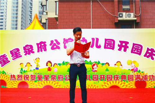 活动现场彩旗飘飘,欢声笑语,喜气洋洋。姜自健校长,泰鑫置业公司领导、泉府公馆幼儿园园长姜河分别发表了热情洋溢的致词。姜自健校长代表学校校务委员会,在致词中对泉府公馆幼儿园表达了最美好的祝福和殷切的祈愿,并向长期以来关心、支持童星教育事业发展的领导和社会各界朋友表示诚挚感谢。他指出,泉府公馆幼儿园是童星在北城新区打造的第六所幼儿园,也是童星旗下的第28所幼儿园。北城新区作为我市最富活力、最具发展潜力的地区,童星教育将在今后相当长的时间内,将主要发展方向瞄准北城片区,计划在这一地区再建五到十所幼儿园,并把学校总部迁至北城新区,以引领童星教育走向一个新的高度。