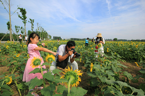 兰陵国家农业公园,一年四季,风景各有特色。千亩向日葵花开争艳,波斯菊、格桑花也争奇斗艳,走在公园内,微风拂面,花海,花香,好不惬意。摄影师们用镜头或聚焦花海,或定格模特人像,尽情地创作,形成了一幅幅美丽的画卷。(王庆龙 钟卫国)