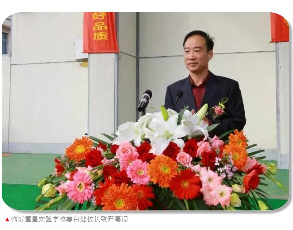 姜自健校长及全体校务委员、临沂第三中学校长律文忠、温和集团传媒公司总经理崔可龙、临沂童星学校文化发展顾问卞文元、亚太体智能研究院临沂分院总监姚东昊、童星家长代表郝鹏出席开幕式并在主席台就座。