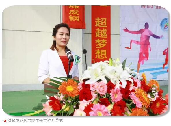 童星学校创始人姜健校长为首届体育节致开幕词。首先他代表学校校务委员会,向本届体育节表示热烈的祝贺,向出席开幕式的各位领导、来宾表示热烈欢迎,向全体运动员、教练员、裁判员表示亲切的问候,向为筹办本届运动会付出辛勤劳动的老师们致以崇高的敬意。他指出,首届“童星杯”金秋体育节,是贯彻党的教育方针,大力推进素质教育的重要体现,是对童星体育教学工作的一次大检阅,特别是对童星人思想、作风的大考验,是促进各项工作不断上水平、提档次的一个契机,更是展示童星师生精神面貌和综合素质的一个窗口。首届体育节的成功举办,必将进一步提高童星干部职工的凝聚力、创造力和向心力,进一步激发干部职工的工作热情和健身热情,团结协作、奋力拼搏、创先争优的精神,必将进一步推动学校各项工作的可持续发展。希望全体运动员以高昂的斗志和顽强的精神,积极参赛,赛出风格、赛出成绩;以最好的行动诠释“团结奋进,超越梦想”的童星精神;诠释童星文化,童星教育,童星温度,展现童星人积极上进、拼搏进取、奋发向上的青春风采。