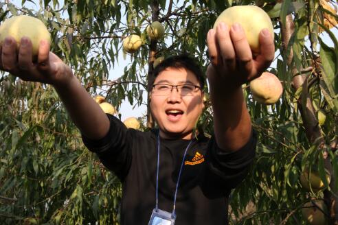 据了解,近年来,该合作社积极挖掘种植本地及全国各地遗留的果蔬老品种、特色品种,目前,获得突破性进展。2004年,合作社从临沂市高新区罗西街道黄土堰村清乾隆遗留的行宫废墟瓦砾石块中发现一株桃树,采挖后经过10多年的培植试验终获成功。该桃的特点是个头大、甜度高、产量好、成熟期晚:该桃没有变异,自花授粉,10月下旬成熟,在树上挂果可达到11月底,加以保护措施,可达到元旦和过年采摘。一般单果重230克至360克,最大可达860克;桃子的含糖度普遍在18%到22%左右,质量高、口感好;桃子的亩产可达5000斤至8000斤。(王庆龙 李海波 摄)